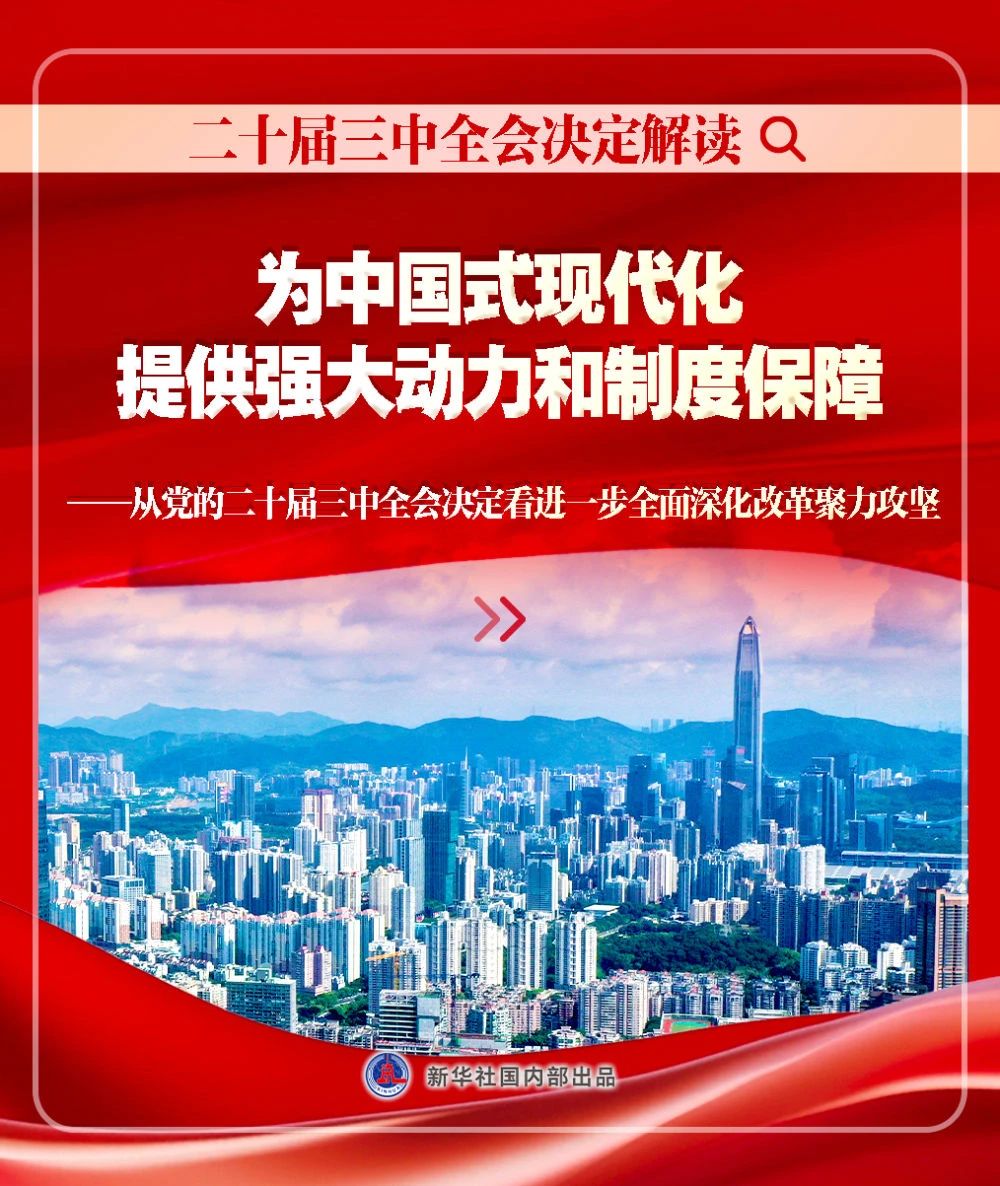 7月21日,《中共中央關(guān)于進(jìn)一步全面深化改革、推進(jìn)中國(guó)式現(xiàn)代化的決定》發(fā)布。新華社推出一系列解讀報(bào)道,深入闡釋黨的二十屆三中全會(huì)決定,..[2024-09-03]