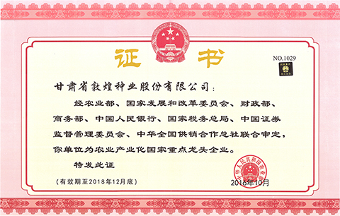 甘肅省敦煌種業(yè)集團(tuán)股份有限公司是主要從事種子、棉花、食品加工業(yè)務(wù)的大型農(nóng)業(yè)綜合上市公司。公司現(xiàn)有注冊資本5.28億元,分、子公司19家,員工600余人。公司為農(nóng)業(yè)產(chǎn)業(yè)化國家重點(diǎn)龍頭企業(yè)、全國守合同重信用企業(yè)、農(nóng)業(yè)部首批育繁推一體化種子經(jīng)營企業(yè)、中國種業(yè)信用骨干企業(yè)、甘肅省戰(zhàn)略新興產(chǎn)業(yè)骨干企業(yè)和高新技術(shù)企業(yè)。公司“敦煌飛天”商標(biāo)為中國馳名商標(biāo)、甘肅省著名商標(biāo)。